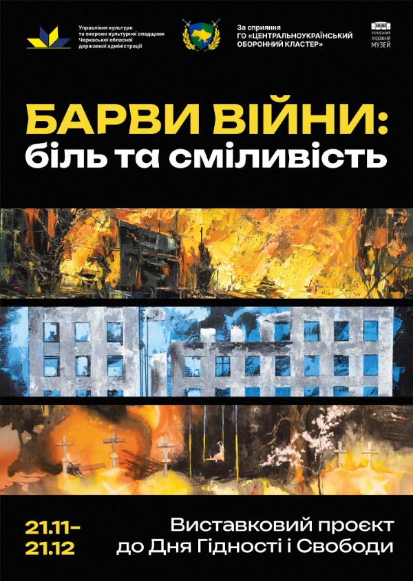 До Дня Гідності та Свободи у Черкасах відкрили виставку «Барви війни: біль та сміливість», що показує війну очима українських митців — без прикрас, але з великою силою і вірою в перемогу.