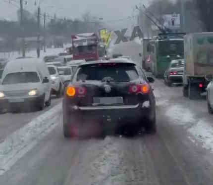 У Черкасах містяни скаржаться на поганий стан доріг через снігову "кашу" та ожеледицю. Подекуди виникають затори через автівки, які через слизьку дорогу не можуть зрушити з місця.