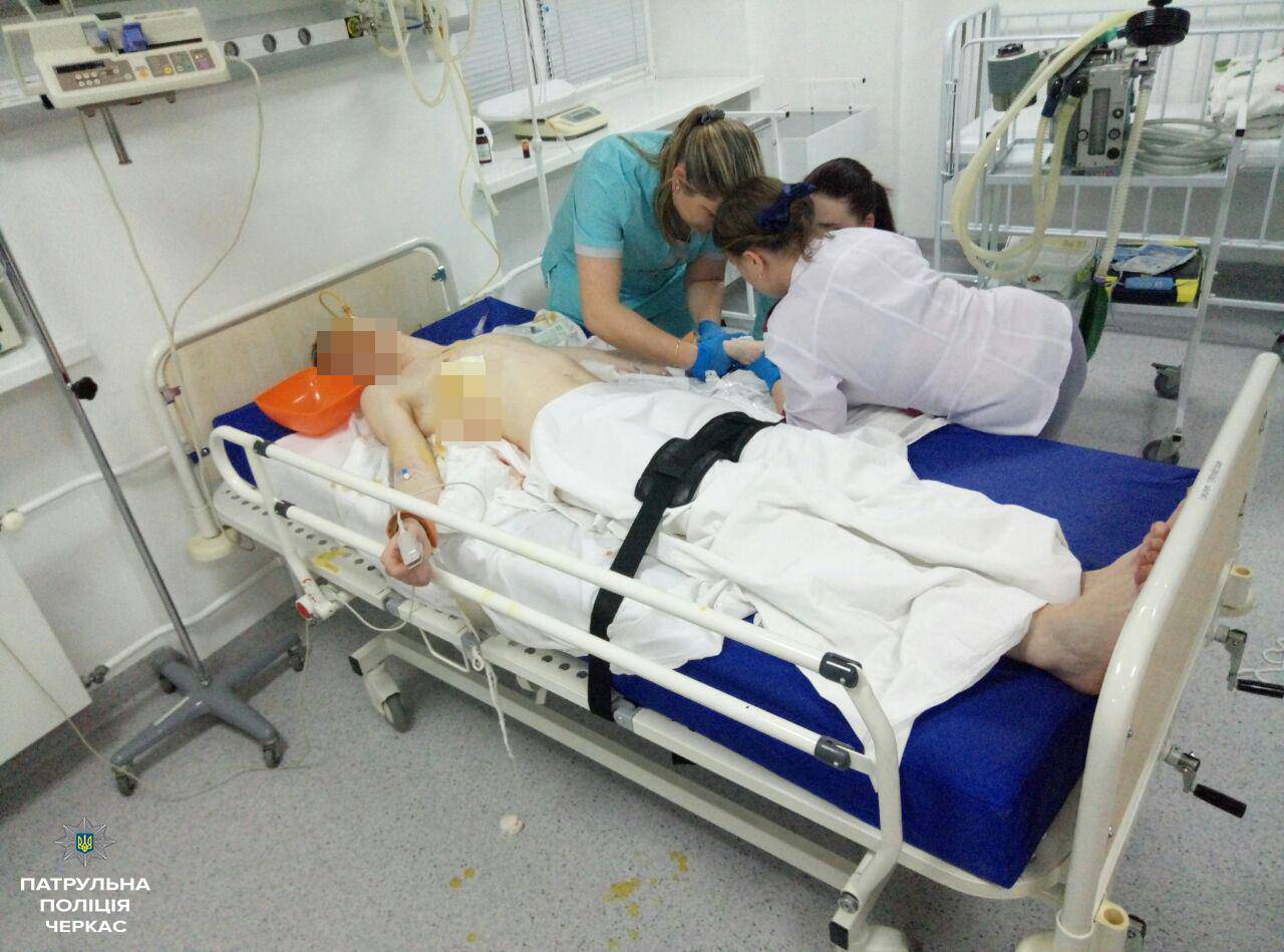Черкаські патрульні затримали чоловіка, який скоїв напад на 17-річного парубка. Повідомлення про ножове поранення патрульні отримали з вулиці Максима Залізняка. По прибуттю, на місці події, біля під`їзду будинку виявили 17-річного парубка з раною в животі. Поруч з потерпілим перебувала сестра, яка вказала, що нападник знаходиться в одній із квартир де до цього між ними виник...
