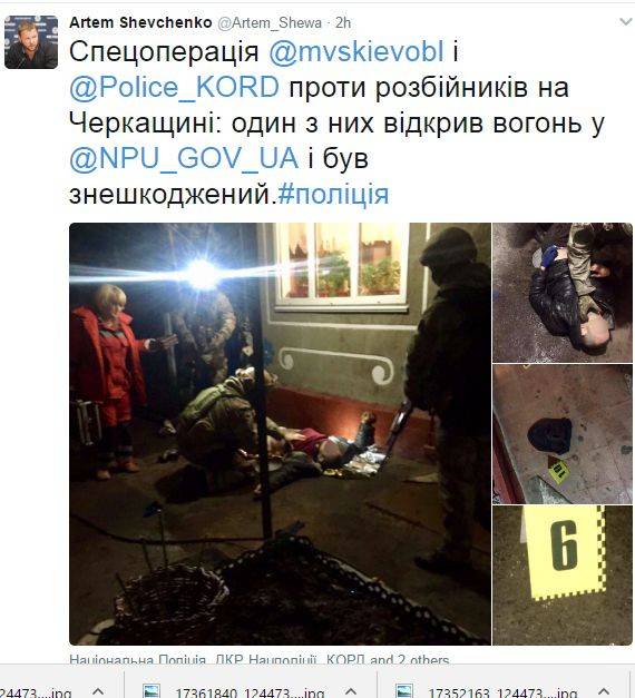 На Черкащині під час спецоперації поліції і спецпідрозділу КОРД застрелено зловмисника, який стріляв у поліцію. Про це у Twitter повідомив директор Департаменту комунікацій МВС України Артем Шевченко, інформує "Еспресо". "Спецоперація області і підрозділу КОРД проти розбійників на Черкащині: один з них відкрив вогонь у поліцейських і був знешкоджений", - написав Шевченко. Він додав, що деталі...