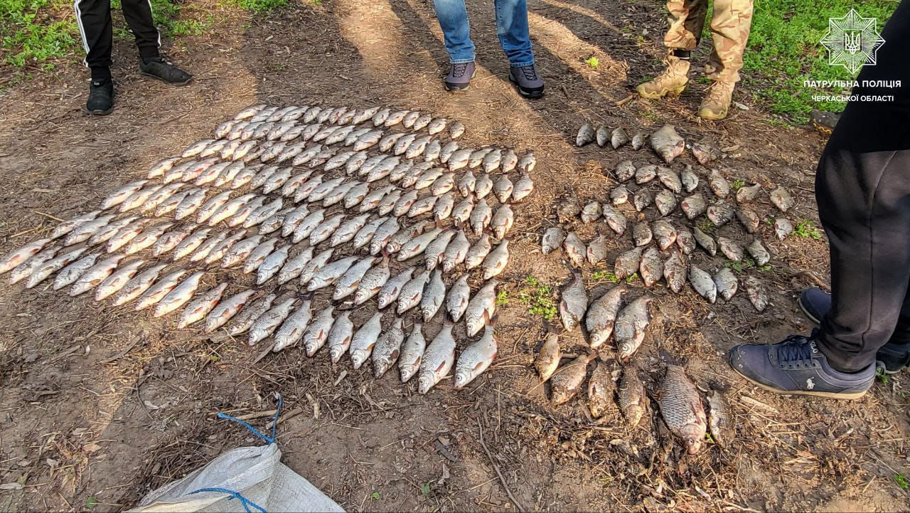 Сьогодні, близько 5-ї години, у прибережній смузі річки Дніпро в адмінмежах села Сагунівка Черкаського району, інспектори водного патруля виявили чоловіка, який вбрід за допомогою сіток займався виловом риби. У 27-річного чоловіка патрульні виявили мисинові сітки, рибальський гумовий костюм та свіжовиловлену рибу видів: плітка - 143 шт., лящ - 2 шт., карась - 6 шт., синець...