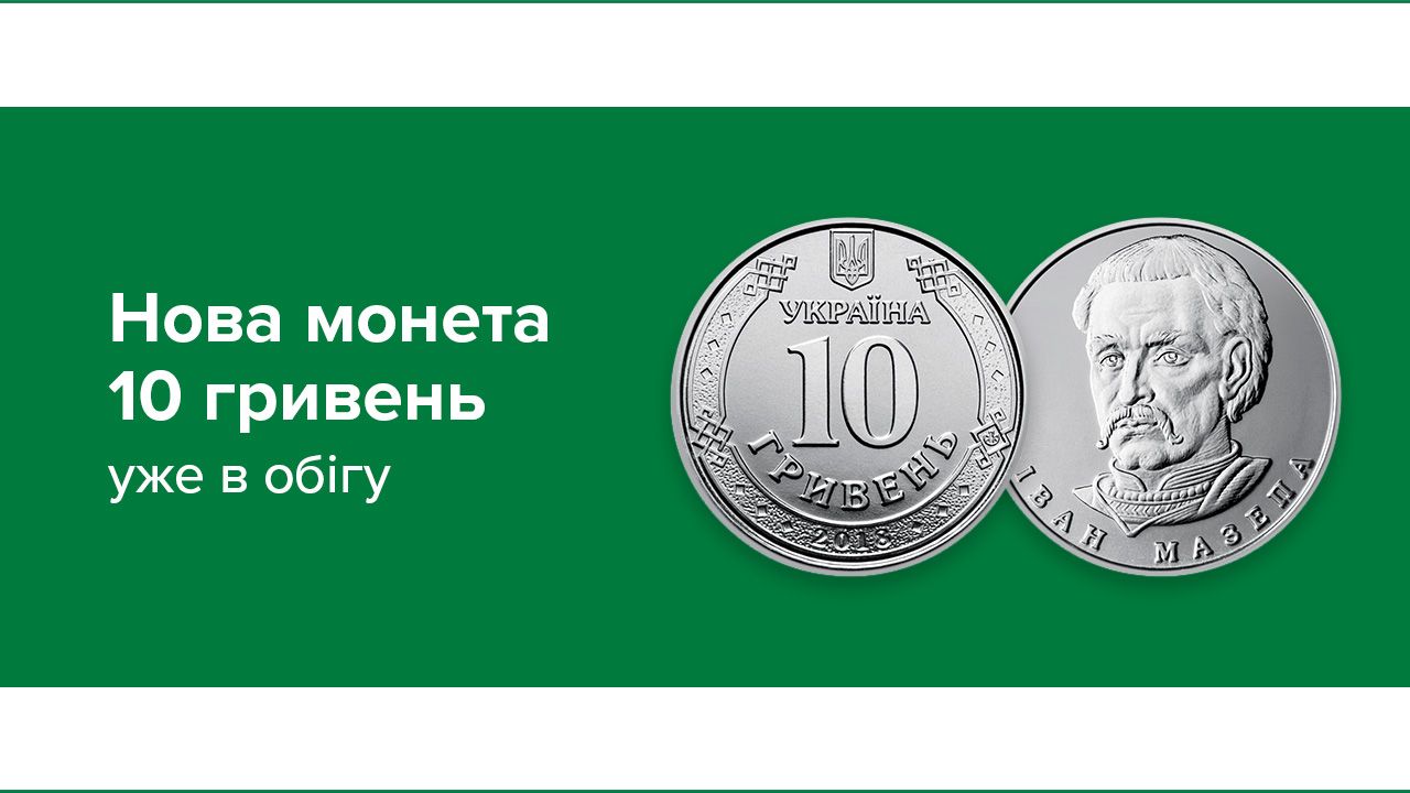 Національний банк України ввів в обіг монети номіналом 10 гривень. Від 3 червня обігові 10-гривневі монети є дійсним платіжним засобом на території України. Ними можна вільно розрахуватися в торговельній мережі або здійснювати операції в банках. Вони поступово замінять у обігу банкноти номіналом 10 гривень. Уведення в обіг нових монет номіналом 10 гривень продовжує кроки НБУ...