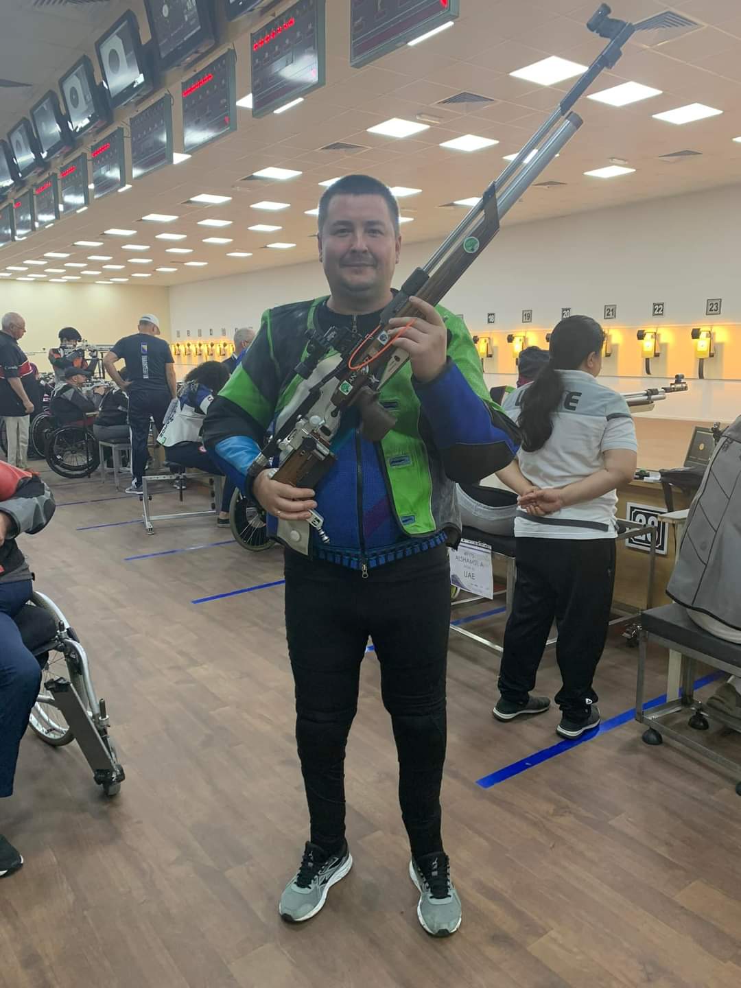 Черкащанин Олександр Денисенко приніс Україну вже другу медаль, яку здобув на чемпіонаті світу з кульової стрільби серед спортсменів з ураженням опорно-рухового апарату. Змагання проходять в ОАЕ. Про це інформують на сторінці «Інваспорт Черкаси». Команда у складі Дорошенка Андрія, Стоєва Юрія, Денисенка Олександра виборола «срібло» чемпіонату світу у вправі R1 (пневматична гвинтівка стоячи, 10 м, 60...