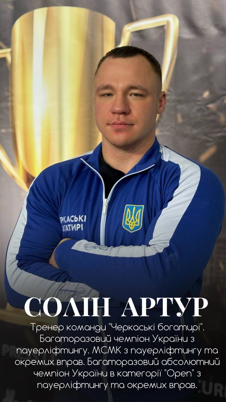 Тренер команди «Черкаські богатирі», майстер спорту міжнародного класу з пауерліфтингу Артур Солін виконав вправу жим лежачи з вагою 220 кг, у ваговій категорії до 110 кг. Це вражаюче досягнення, а також демонстрація техніки та сили. Артур Солін стабільно підтверджує свій професіоналізм, реноме та статус лідера для всіх спортсменів команди. Почесним президентом клубу є Григорій Петрович...