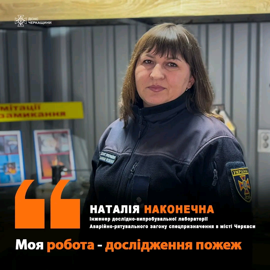 Наталія Наконечна — інженер дослідно-випробувальної лабораторії Аварійно-рятувального загону спецпризначення в місті Черкаси. Свої перші погони офіцера Наталія символічно отримала на заході з відкриття меморіальної дошки у пам'ять про її батька — Олексія Жирного, який присвятив життя рятувальній справі і трагічно загинув під час ліквідації масштабної пожежі. До лав ДСНС Наталія приєдналася одразу по закінченню школи....