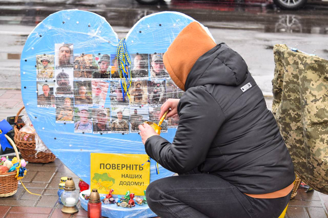 Кошики з пасками, військова форма на стільцях та серце, обклеєне фотографіями зниклих безвісти та тих, хто в полоні — таку інсталяцію підготували на акцію перед Великоднем у Черкасах. На ній зібралися понад пів сотні людей, пише Суспільне. Серед них — в очікуванні брата Валентина Саліхова. Вона розповіла, що спілкувалися з ним за два дні до...