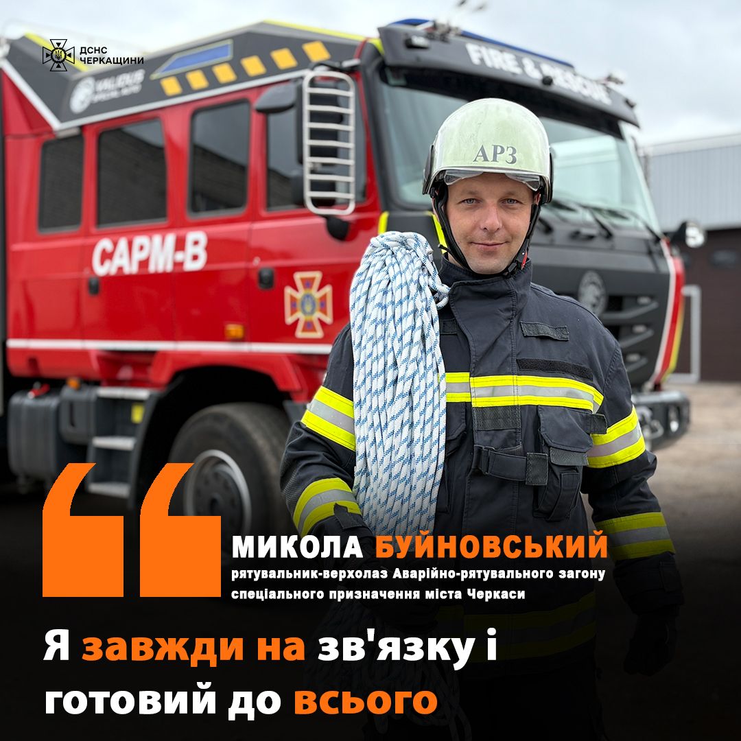 Микола Буйновський — рятувальник-верхолаз Аварійно-рятувального загону спеціального призначення міста Черкаси. Свій шлях у Службі порятунку він розпочав в 2012 році. Маючи медичну освіту, обіймав посаду фельдшера. Здійснював медичний супровід особового складу. У разі потреби, надавав допомогу, як рятувальникам, так і населенню під час ліквідації надзвичайних подій. А у 2017 Микола у складі піротехнічного розрахунку 2...