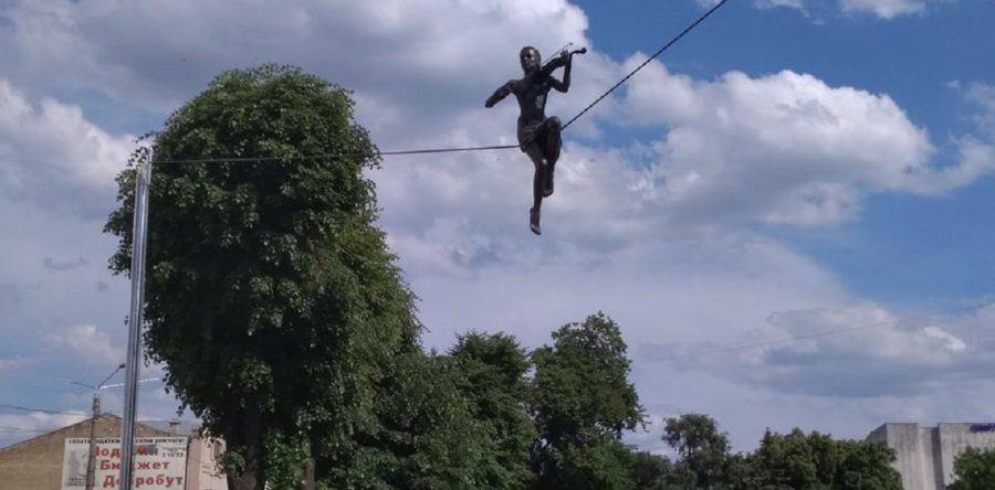 Балансуюча скрипалька вже з᾽явилася біля Черкаської обласної філармонії, інформує "Антена". Будівельники завершують монтаж фігури, висота якої – понад півтора метра. Фігуру закріплять на тонкому сталевому тросі, натягнутому від філармонії до металевого опорного стовпа. Останній виконаний у вигляді скрипкового грифу та смичка. Нагадаємо, урочисте відкриття скульптури відбудеться 19 травня.