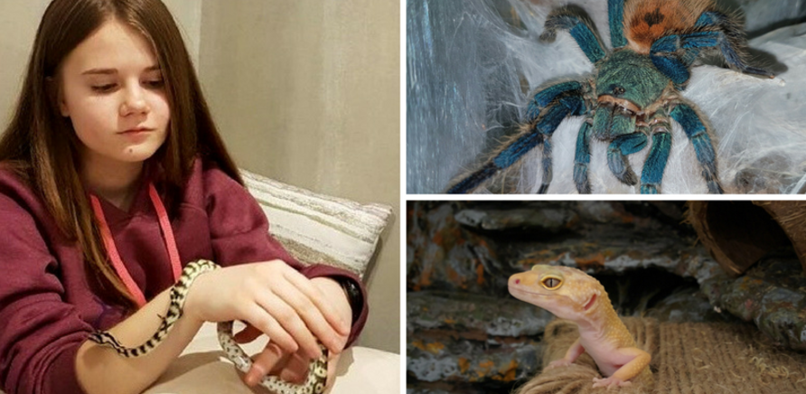Черкащанка Марина Збавитель навчається у восьмому класі. Окрім собаки та рибок, вдома у дівчини живе двадцять п'ять павуків, три ящірки, скорпіон і пітон Леон. Першими мешканцями домашнього тераріуму були павуки. В дитинстві Марина дуже боялася цих тварин. Щоб подолати фобію, батьки придбали павука, а згодом їх зацікавили ці екзотичні тварини. Нині в родині Марини живе 25 павуків-птахоїдів різних видів, деякі з них...