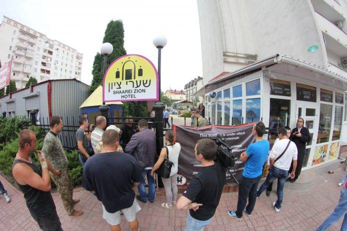 Епіцентром бойових дій став сумнозвісний готель «Шарей Зіон». Саме тут під час чергового рейдерського захоплення отримав поранення учасник АТО, інформує "Вечірня Умань". Шестеро молодиків, під приводом візиту в сауну, яка знаходиться на території готелю , потрапили в приміщення і відкрили вогонь по охоронцеві. Він отримав поранення в ногу, а іншого почали витягувати через розбите вікно...