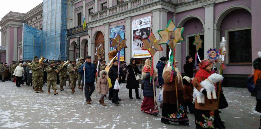 Справжній вертеп пройшов вулицею Хрещатик від обласної філармонії до площі Слави. До обрядового дійства долучилися представники влади, творчих колективів, церковнослужителі та громада, інформує Антена. У супроводі військового оркестру виконали відомі українські колядки: «Ой, радуйся, земле» та «Нова радість стала». Біля Свято-Троїцького собору усі разом виконали колядку «Сумний Святий вечір» на знак вшанування загиблих українських Героїв.