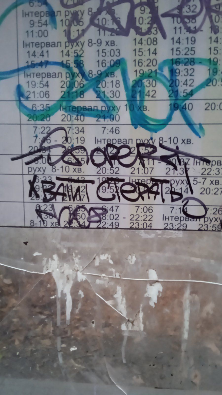 Працівники КП "Челуаш" нарікають, що чи не щодня змушені очищати зупинку "Казбетська" на бульварі Шевченка від написів і малюнків, які залишають вандали. "Але, на жаль, минулої ночі ситуація тільки погіршилася – написали "Хватит стирать!" і ще більше обмалювали зупинку, - розповідають у комунальному підприємстві. - Цей випадок – не лише прояв неповаги до праці комунальників,...