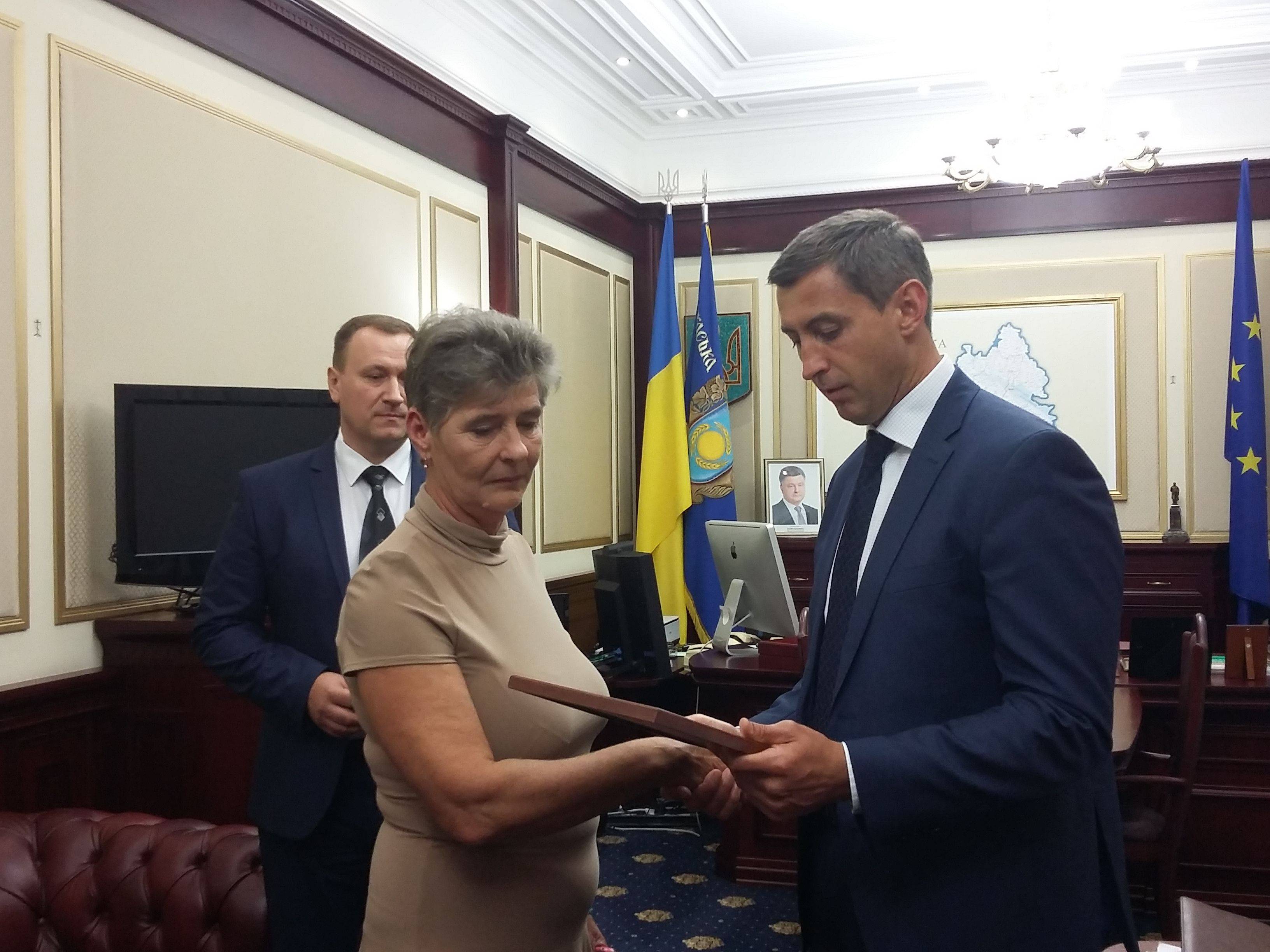 Черкащанка Лідія Сівак отримала відзнаку Президента України «За гуманітарну участь в антитерористичній операції». Черкаській волонтерці її вручив очільник області Юрій Ткаченко, інформують в Черкаській ОДА. Пані Лідія займається волонтерством уже четвертий рік. Минулого літа, повертаючись із передової, разом із подругою потрапила у ДТП на Дніпропетровщині. Виходжували волонтерок в обласній лікарні. – Пані Лідія – мужня...