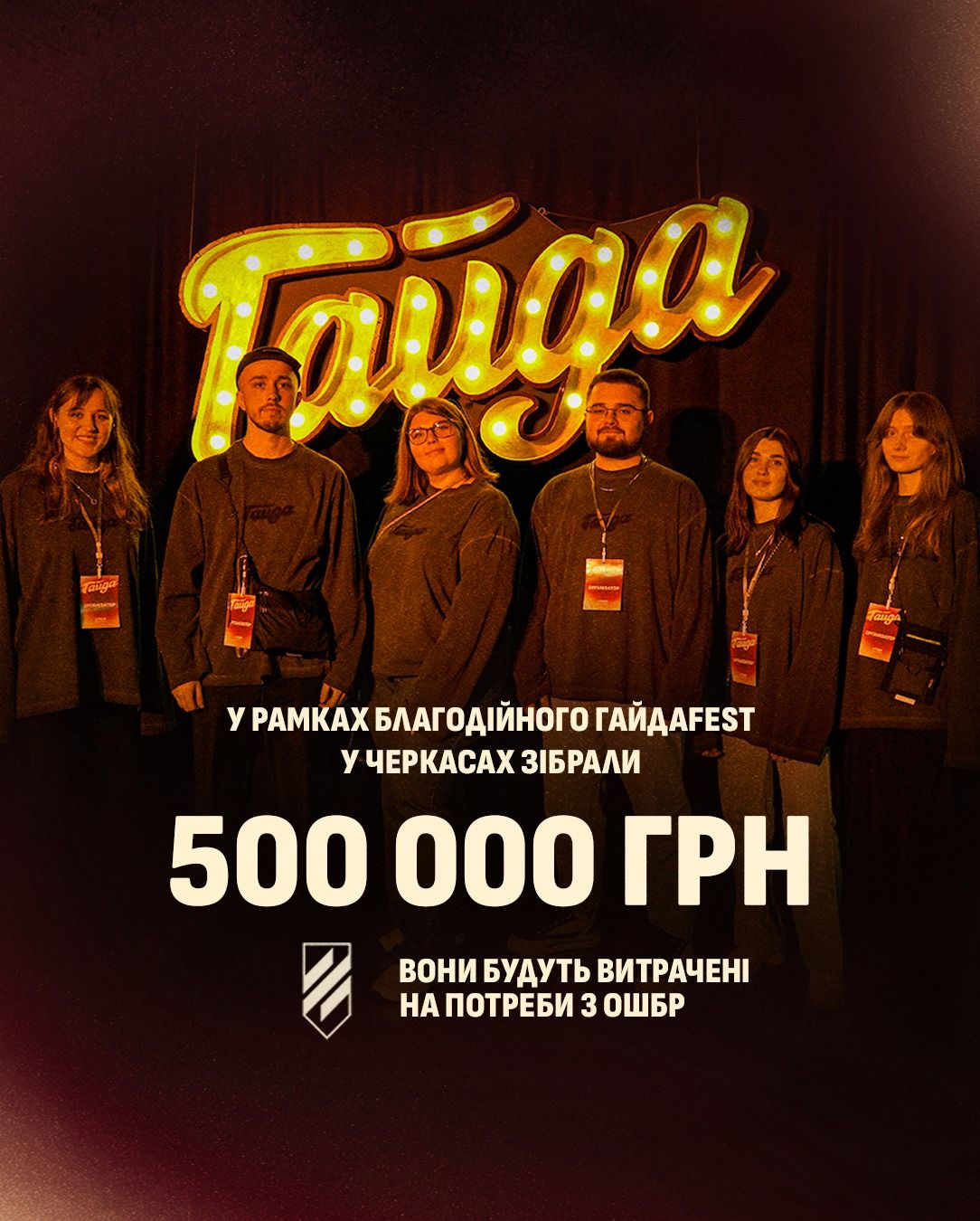 Понад 500 000 гривень для 3 ОШБр зібрано в рамках ГайдаFest у Черкасах. На заході були присутні понад 400 відвідувачів. Про це організатори повідомили на своїй сторінці у Фейсбук. Організатори кажуть, що таку суму вдалося зібрати за допомоги гостей: Курган, Kurs Valüt, BAHROMA, Скажи Щось Погане, Джозерс та Артистка Чуприненко, які підтримали мету та благодійно...