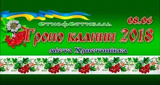 8 червня в місті Христинівка, що на Черкащині, в парку імені Т.Г. Шевченка відбудеться ІІІ дитячий етнофестиваль «Гроно Калини». Розпочнеться подія о 9-й годині. Метою фестивалю є об’єднання дітей та дорослих у єдину творчу спільноту для знайомства з древніми, традиційними та сучасними зразками проявів національної культури та побуту, створення умов для демонстрації індивідуальних творчих здібностей...
