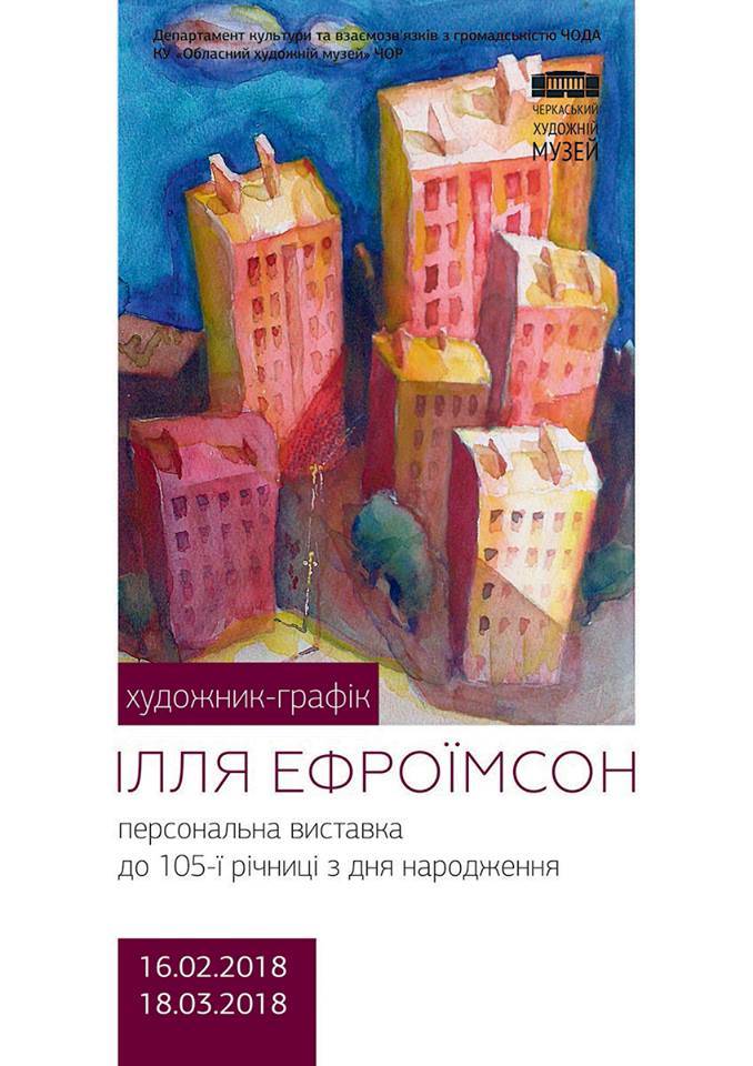У Черкаському художньому музеї презентують творчість талановитого художника, відомого представника Харківської школи живопису і графіки, члена Спілки художників України Іллі Яковича Ефроїмсона. На виставці експонується близько 30 графічних творів 1980-1990-х років, надані донькою автора – Тетяною Ефроїмсон-Грибановою. Зокрема представлені роботи митця, присвячені сумнозвісним сторінкам української історії – Голодомору та репресіям, а також ілюстрації до роману...