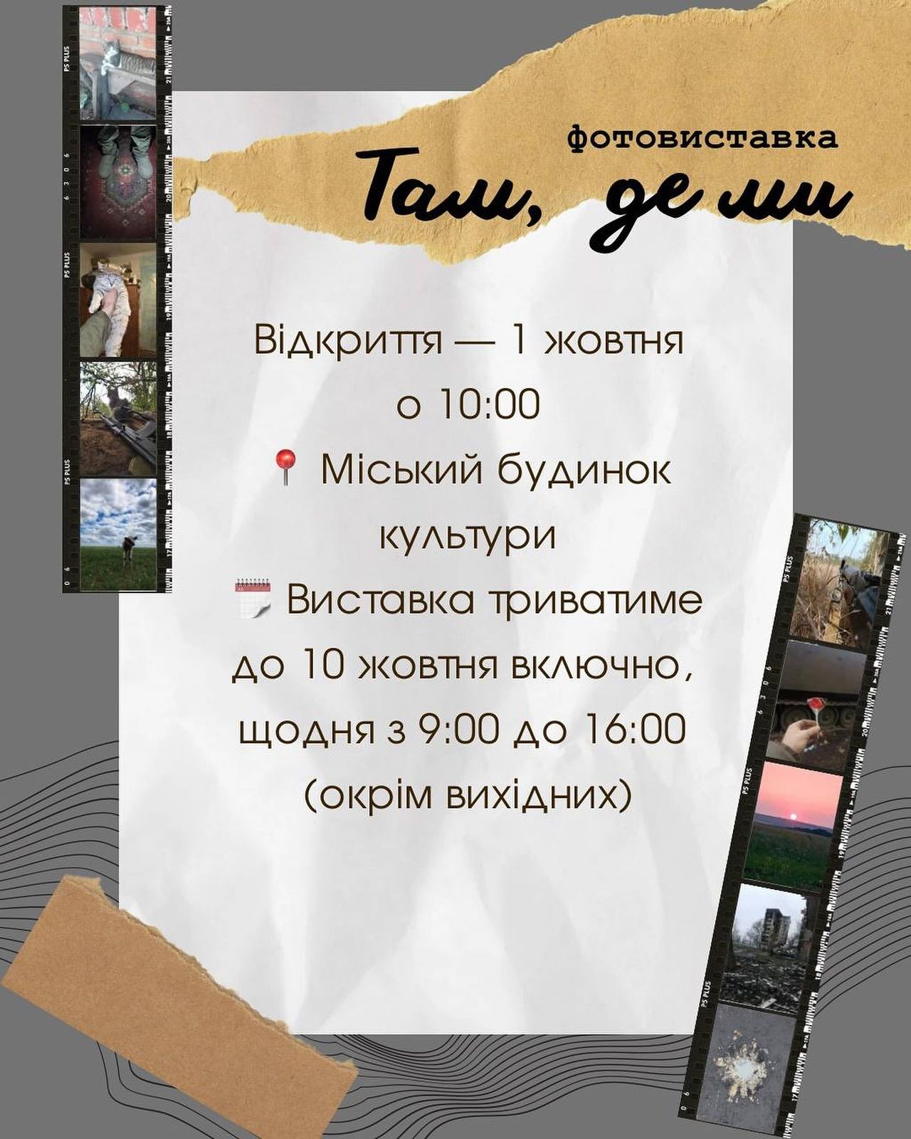 У Каневі з нагоди Дня захисників і захисниць України відкриється виставка світлин, зроблених військовими у зоні бойових дій. Відкриття відбудеться 1 жовтня о 10:00 у фоє Міського будинку культури. Виставка триватиме до 10 жовтня, щодня з 9:00 до 16:00 (окрім вихідних). За інформацією Канівського міського Будинку культури