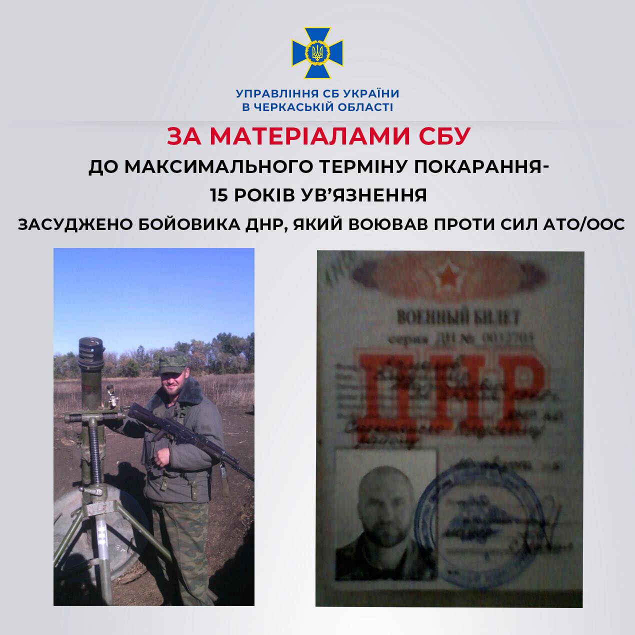 На Черкащині за рішенням суду до 15 років ув’язнення засуджено бойовика терористичної організацій "днр". Досудовим розслідуванням встановлено, що до 2014 року уродженець Донеччини проживав у Смілі. Цього ж року бойовик приєднався до незаконного збройного формування так званої «днр» та проходив військову службу у "7-й окремій мотострілецькій бригаді 1-го армійського корпусу народної міліції днр". Він чинив...
