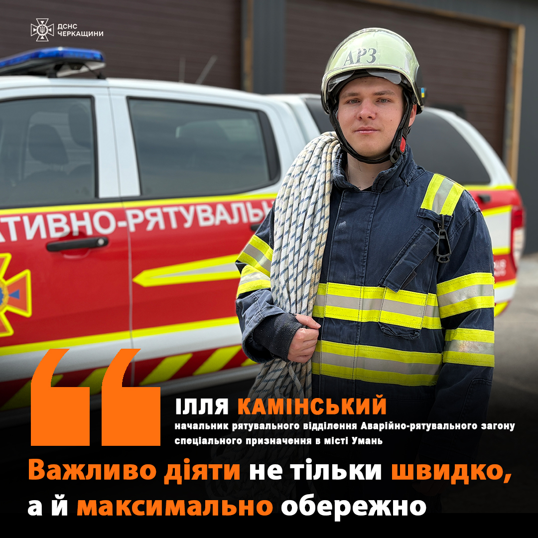 Ілля Камінський - начальник рятувального відділення Аварійно-рятувального загону спеціального призначення в місті Умань. Він впевнений, що рятувальна справа у нього “в крові”, бо прадід був пожежним. Рятувальник згадує, як в дитинстві жив поблизу пожежної частини, щодня ходив повз неї і зацікавленість тільки зростала. Зізнається, що завжди мав тягу до вогню і вирішив направити своє захоплення...