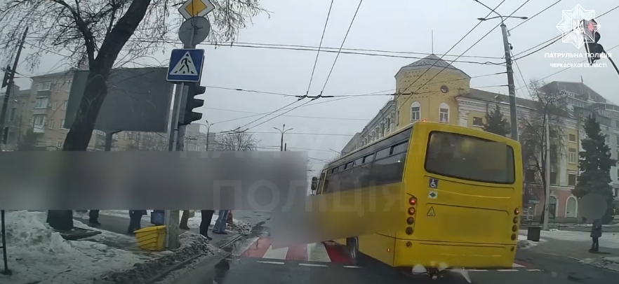 У Черкасах патрульні встановили водія маршрутного транспортного засобу, який порушив ПДР. Відео опублікували в соцмережах свідки події.