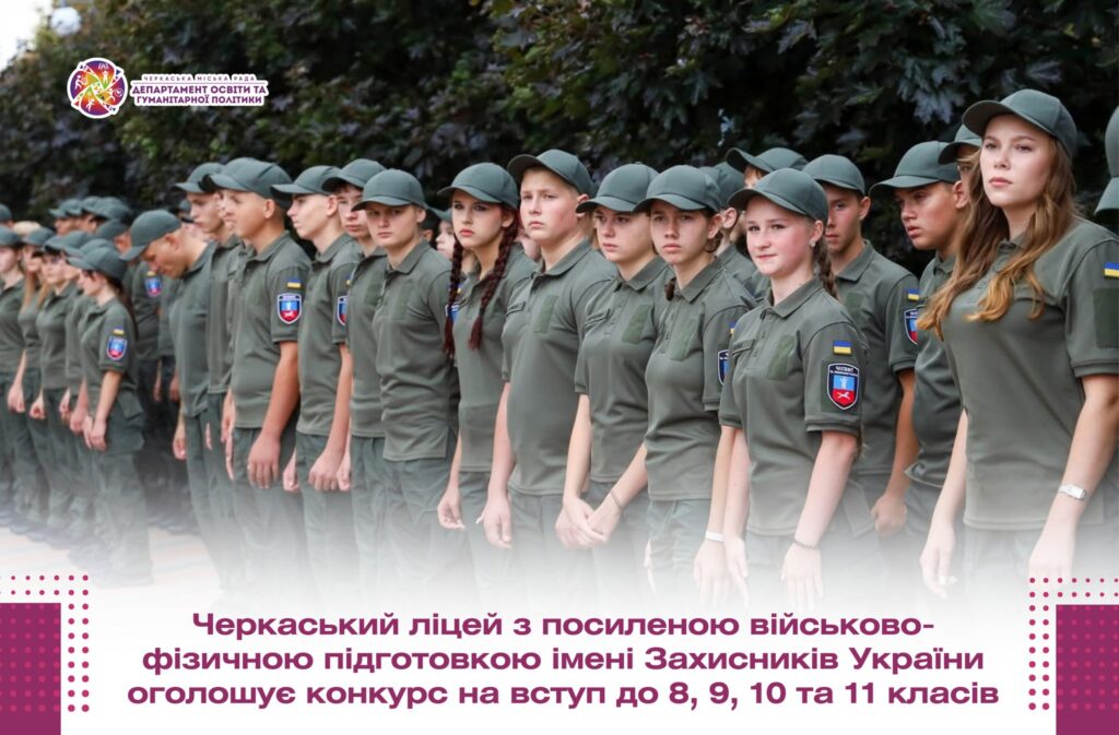 Черкаський ліцей з посиленою військово-фізичною підготовкою імені Захисників України відкрив прийом документів для вступу до 8, 9, 10 та 11 класів, який триватиме до 25 травня.