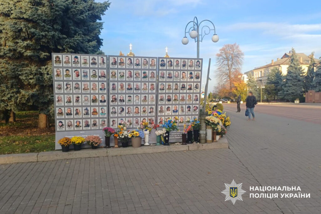 Нагадаємо, 30 жовтня до Черкаського районного управління поліції звернулась місцева мешканка з повідомленням про те, що на площі Слави у місті Черкаси, невідомий осквернив місце з портретами воїнів Збройних сил України.