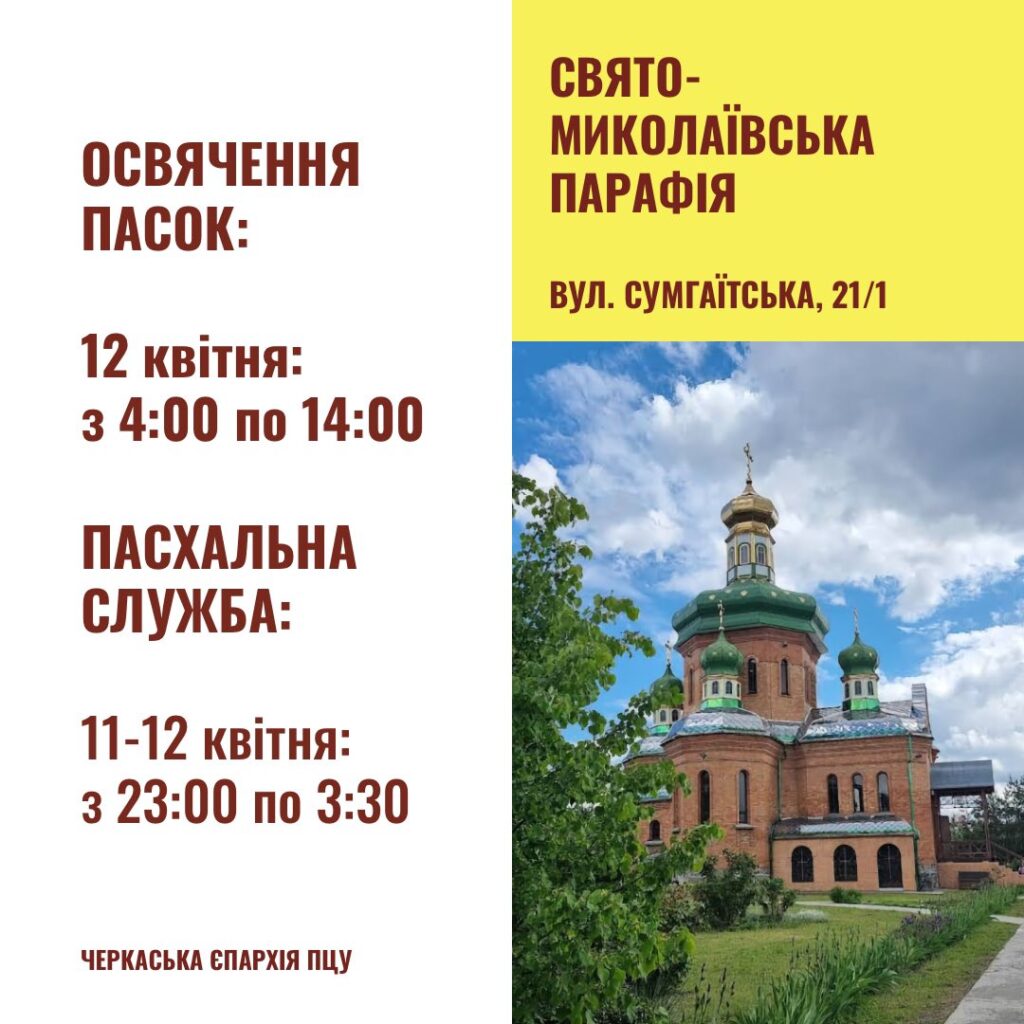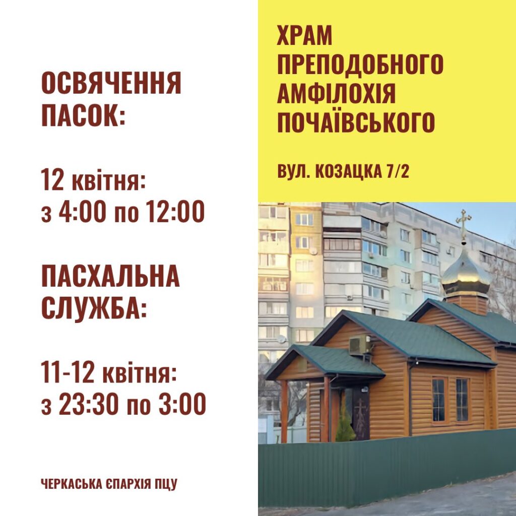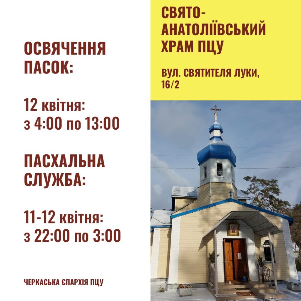 У ніч з суботи на неділю, 12 квітня, у Черкасах у 14 храмах Православної церкви України відбудуться урочисті Великодні богослужіння. Цього вечора віряни зустрінуть Воскресіння Христове - головну подію християнського світу.