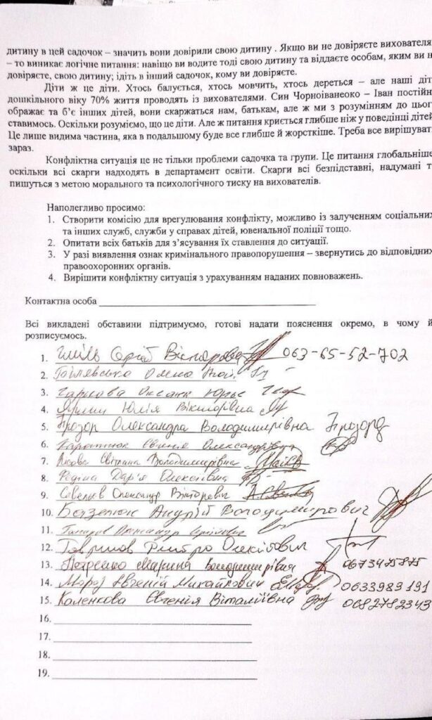 Автор запевняє, що через це вже інші батьки написали колективне звернення до міської ради й поліції.