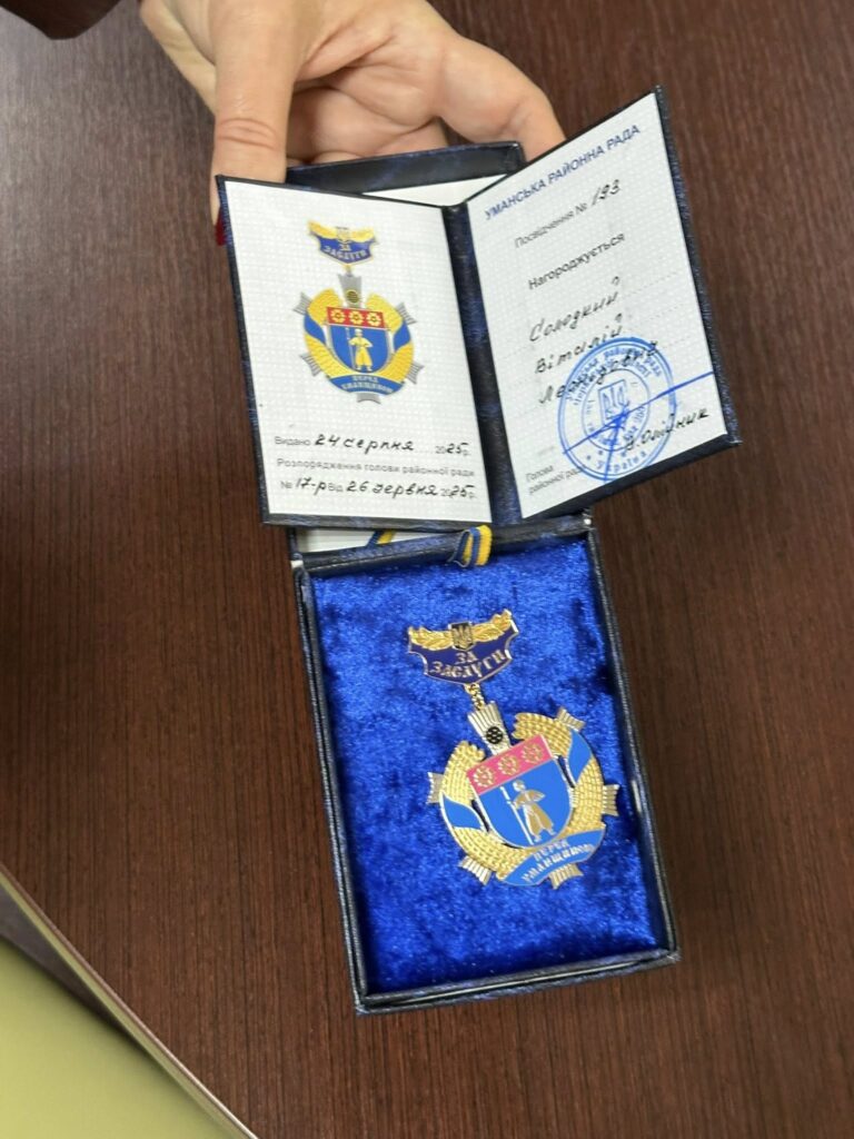 Сьогодні, 3 листопада, в Паланській громаді дружині полеглого захисника Віталія Солодкого вручено відзнаку “За заслуги перед Уманщиною” (посмертно).