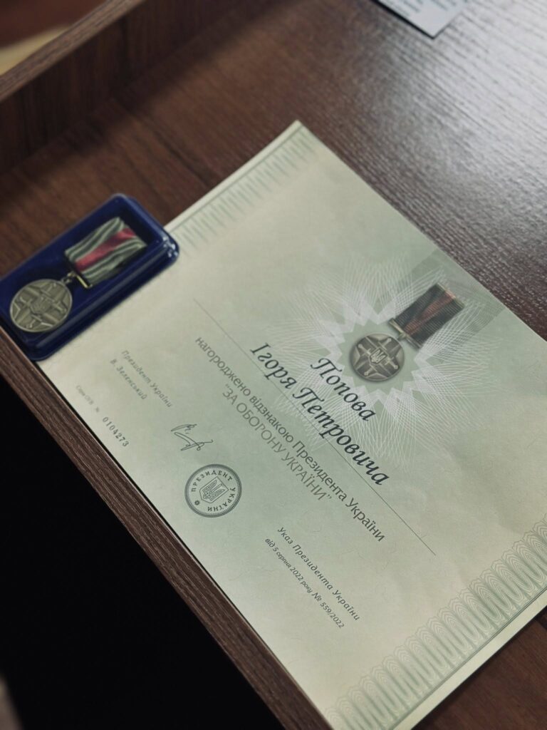 Відзнакою Президента України «За оборону України» нагороджено Попова Ігоря Петровича, жителя села Громи. Нині захисник вважається безвісти зниклим. Відзнаку отримала його дружина.