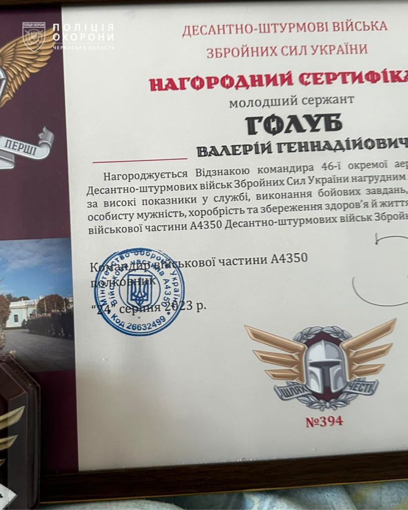 Сьогодні Валерій Голуб - охоронник групи охорони об’єктів публічної безпеки Уманського райвідділу поліції охорони Черкащини, який забезпечує надійний захист стратегічних об'єктів та підтримує публічний порядок заради безпеки жителів регіону. Проте за його плечима - дворічний досвід запеклих боїв на фронті.