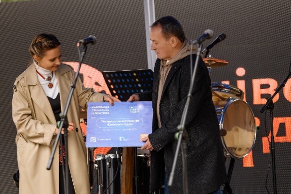 Тетяна Волочай також вручила спеціальний сертифікат ГО «КанівФест», який підтвердив визнання проєкту «Канівські наїдки» найкращою соціальною ініціативою 2025 року.