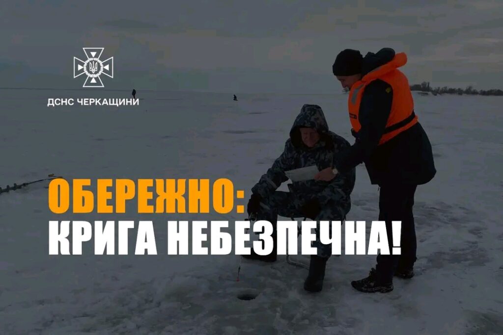 На водоймах Черкащини спостерігається нестабільна льодова обстановка. Через коливання температури лід стрімко втрачає міцність і стає підступно тонким навіть там, де ще вчора здавався надійним.