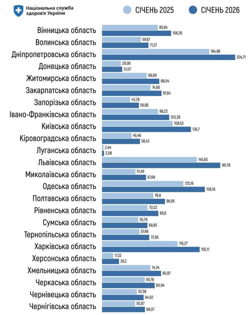 За даними НСЗУ, у січні 2026 року закладам ПМД по країні спрямовано 2,339 млрд грн проти 1,887 млрд грн у січні 2025-го. У лютому - 2,351 млрд грн проти 1,883 млрд грн роком раніше.
