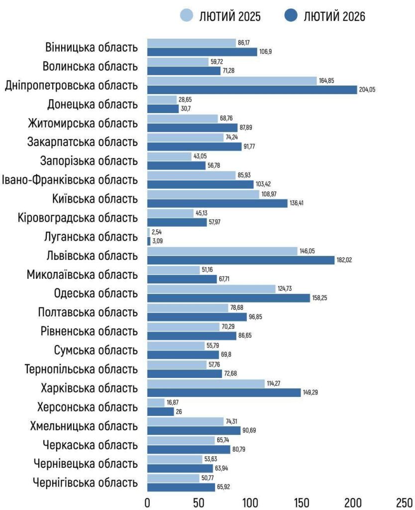 - Лютий 2026 року - 80,79 млн грн