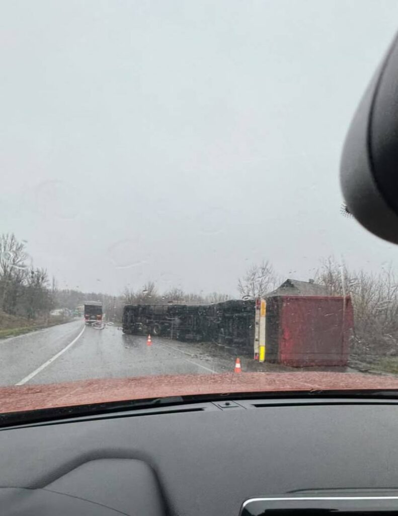 На Уманщині внаслідок аварії перекинулася вантажівка. Пригода сталася сьогодні, 21 листопада, поблизу села Доброводи.