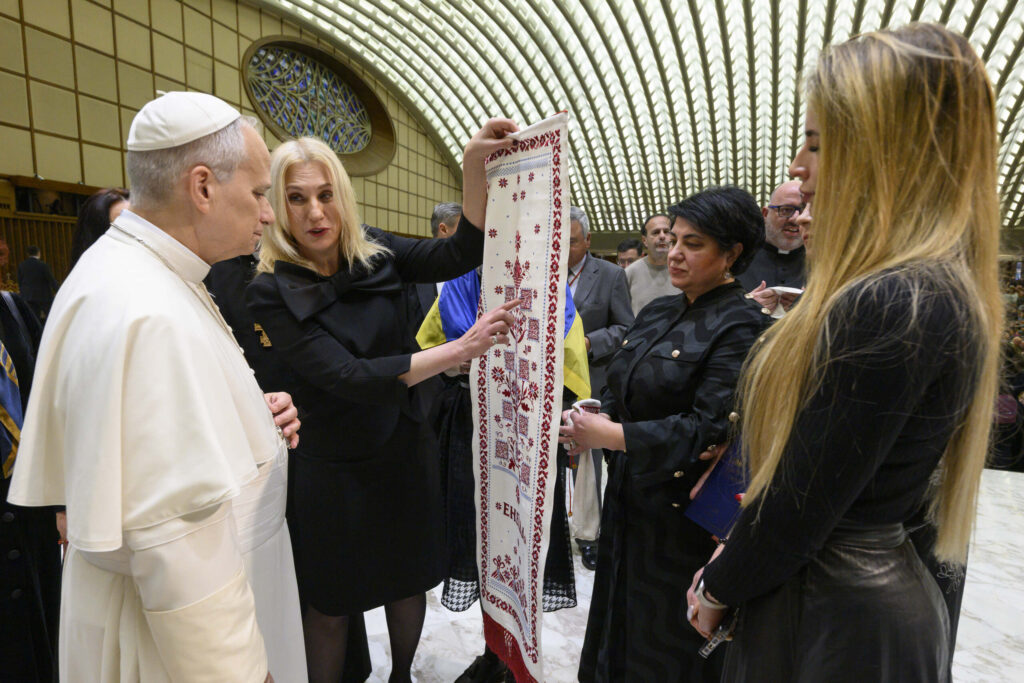 Під час візиту до Ватикану представниці Міжнародного жіночого руху «За сімейні цінності» подякували Папі за його підтримку України та передали унікальний гастрономічний рушник, який створили разом із Благодійним фондом «МХП-Громаді».
