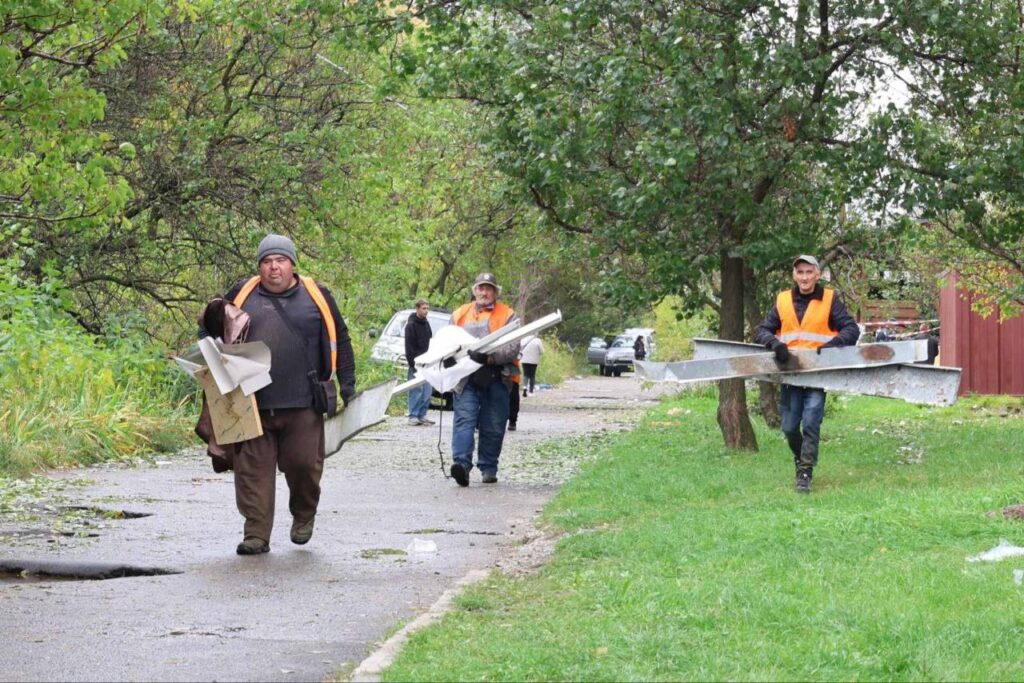 Разом із містянами всі профільні служби спільно прибирають потрощене. Команда Червоного Хреста допомагає з першочерговими роботами та будматеріалами – щоб оперативно закрити побите. Доєднуються і громади Черкаського району. На місці працює штаб з ліквідації наслідків надзвичайної ситуації. Комісії все фіксують.