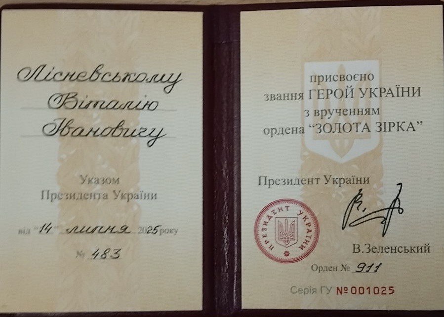 Президент України Володимир Зеленський вручив орден «Золота Зірка» солдату батальйону «Воля» — Віталію Лісневському, жителю села Ліпляве, що на Канівщині.