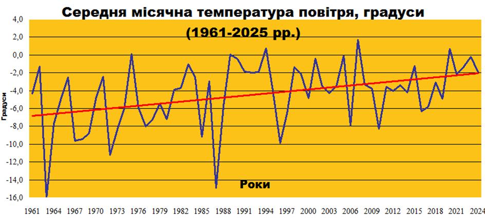 В останні 30 років січень на Черкащині став на 2,3° тепліше та сухіший на 6%.
