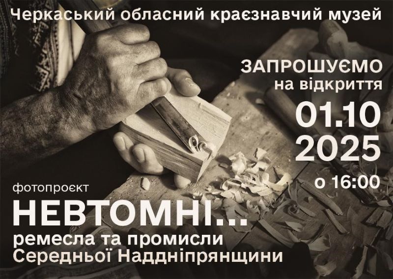 1 жовтня о 16.00 у Черкаському обласному краєзнавчому музеї презентують етнопроєкт «Невтомні… ремесла та промисли Середньої Наддніпрянщини».