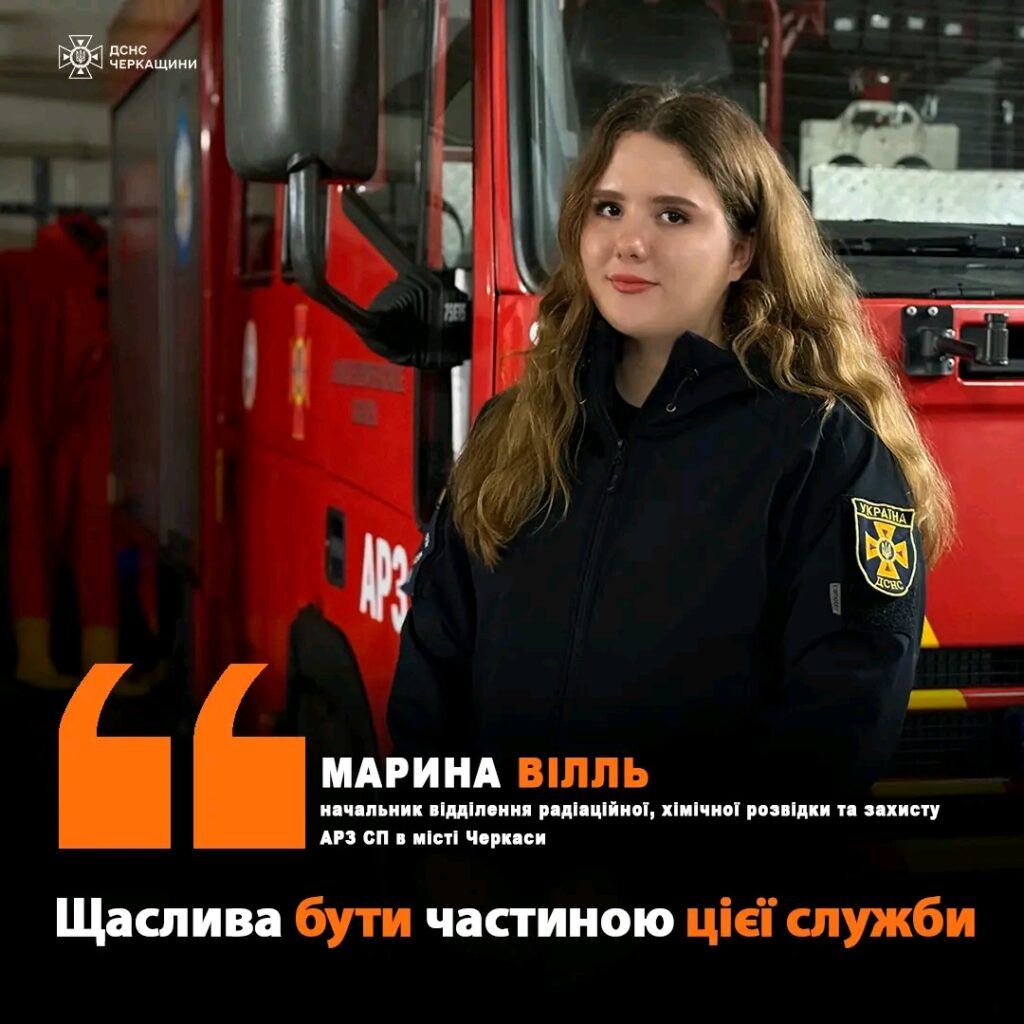 Марина Вілль — начальниця відділення радіаційної, хімічної розвідки та захисту АРЗ СП в місті Черкаси.