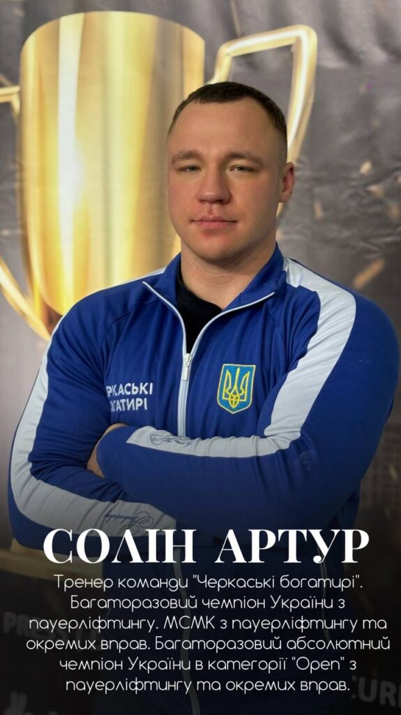 Тренер команди «Черкаські богатирі», майстер спорту міжнародного класу з пауерліфтингу Артур Солін виконав вправу жим лежачи з вагою 220 кг, у ваговій категорії до 110 кг. Це вражаюче досягнення, а також демонстрація техніки та сили. Артур Солін стабільно підтверджує свій професіоналізм, реноме та статус лідера для всіх спортсменів команди.