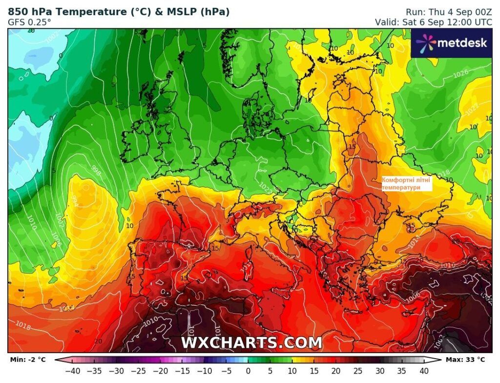 У період 5-7 вересня Черкащина буде одним із найкомфортніших регіонів України. Гармонійне поєднання все ще високого сонця, ясного неба та слабкого північно-східного вітру забезпечать по-літньому теплі, але не спекотні дні з температурою до 25-27°. Вночі при вихолоджуванні вона знизиться до 10-12°. І ніякого натяку на дощі.