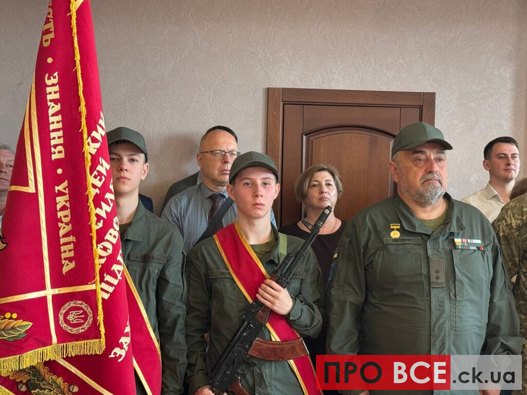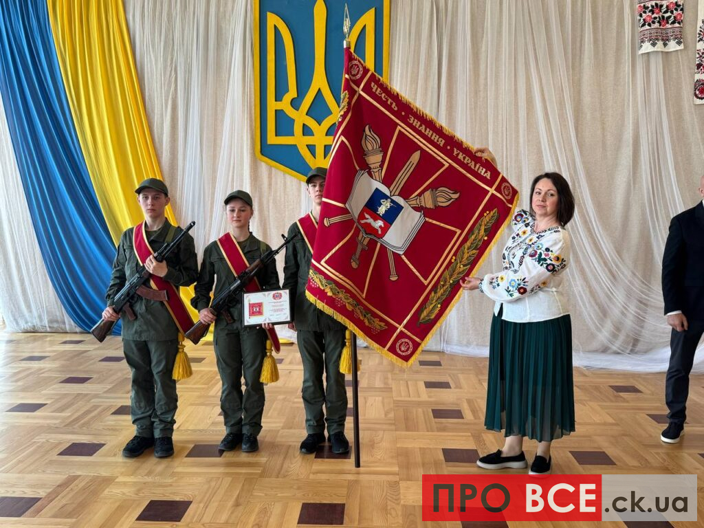 Першу річницю заснування Черкаського ліцею з посиленою військово-фізичною підготовкою імені Захисників України відзначили в обласному драмтеатрі урочистим врученням офіційного Прапора закладу сьогодні, 6 квітня.
