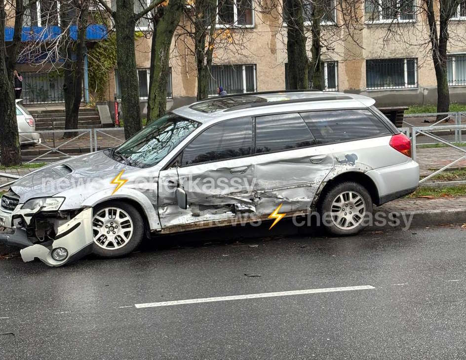 У Черкасах автомобіль Subaru внаслідок зіткнення з іншою автівкою протаранив металеву огорожу. Автопригода сталася на вулиці Чехова.