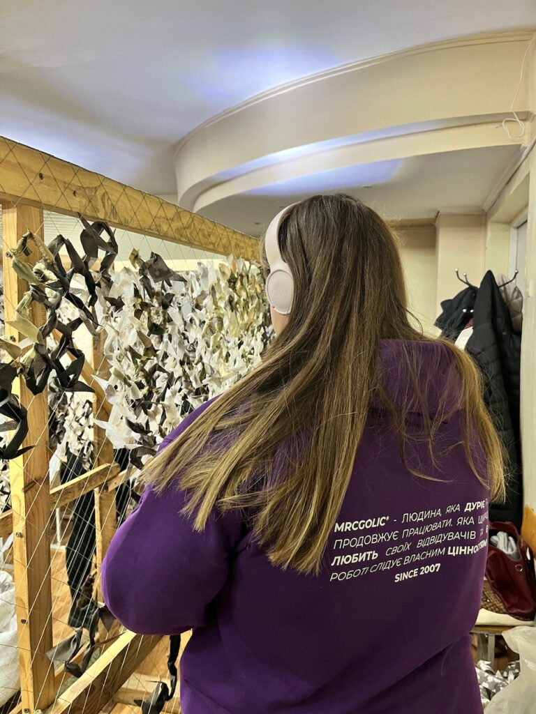 За словами директорки МРЦ Олени Левченко, співпраця з Центром допомоги армії розпочалася ще торік. Тоді команда вперше долучилася до плетіння маскувальних сіток і на власному досвіді переконалася, наскільки така допомога є важливою для військових.