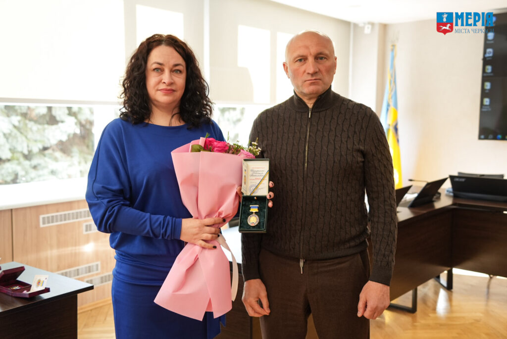 Медаллю «Незламній духом черкащанці» нагороджено дружину військовослужбовця, головного спеціаліста департаменту дорожньо-транспортної інфраструктури та екології Черкаської міської ради Наталію Бондаренко - за активну громадянську позицію, професіоналізм, витримку та силу волі.