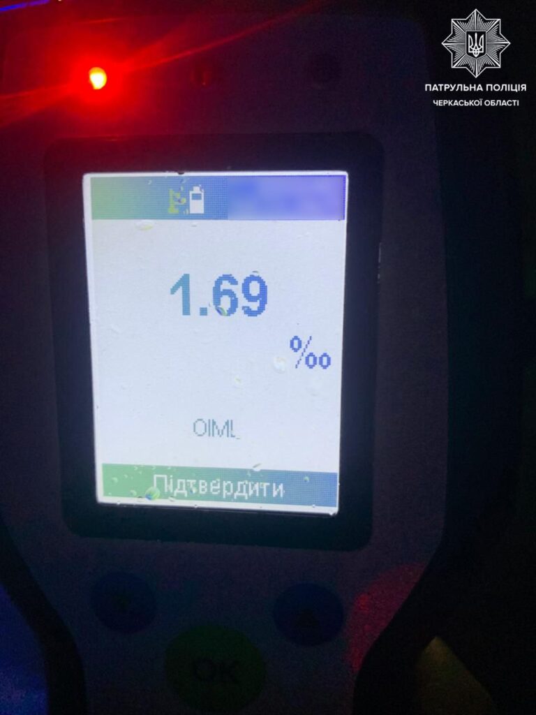 Спілкуючись із водієм авто Volkswagen, інспектори виявили в нього ознаки алкогольного сп’яніння. Результат — 1, 69 проміле. Також, перевіряючи документи, патрульні встановили, що чоловік не мав права керування.