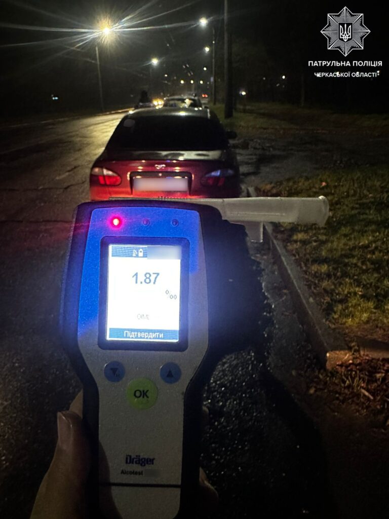 Спілкуючись із водієм, інспектори виявили в нього ознаки алкогольного сп'яніння та запропонували пройти огляд за допомогою приладу Драгер. Результат — 1,87 проміле. Також під час перевірки документів водій повідомив, що не має із собою посвідчення водія.